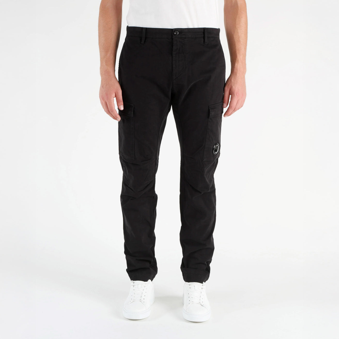 Cargo pants crafted in smooth, soft-textured stretch cotton. The pants feature C.P. Company’s iconic Lens, button and zip fastening, belt loops, side pockets, and a cargo flap snap pockets. Complete with back welt pockets with an applied label. Garment dyed. Ergonomic fit.
