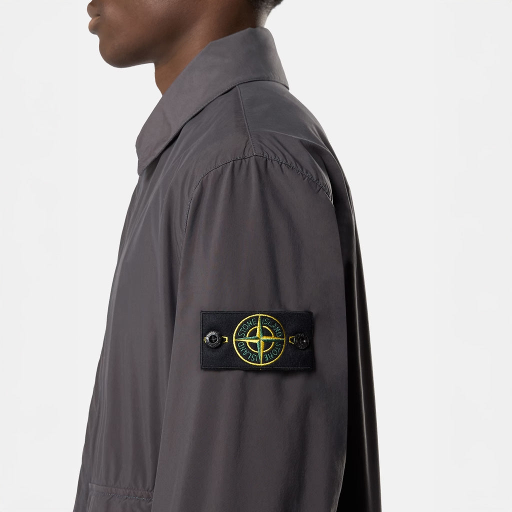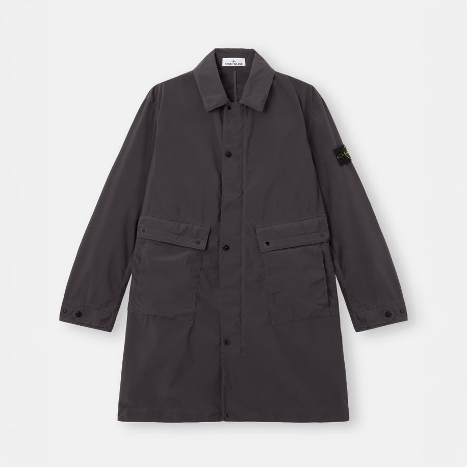 - All-over contrast stitching. - Contrasting undercollar. - Top-entry patch hand pockets with flap and double snap, with overlapping angled hand pockets. - Stone Island badge on left sleeve. - Adjustable cuffs with snap-fastened strap. - Concealed two-way zip fastening with snap placket. - Vent on back hem with snap on tape tab.