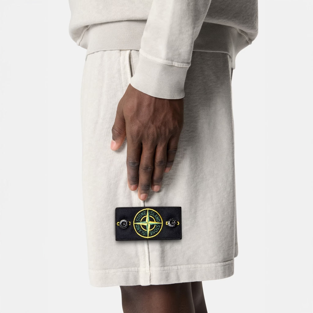 - Vertical welt hand pockets with internal tape reinforcement. - Back patch pocket with snap. - Stone Island badge on left leg. - Elasticated waistband with internal drawstring. - Overlock-stitched details. Loose wide leg fit.