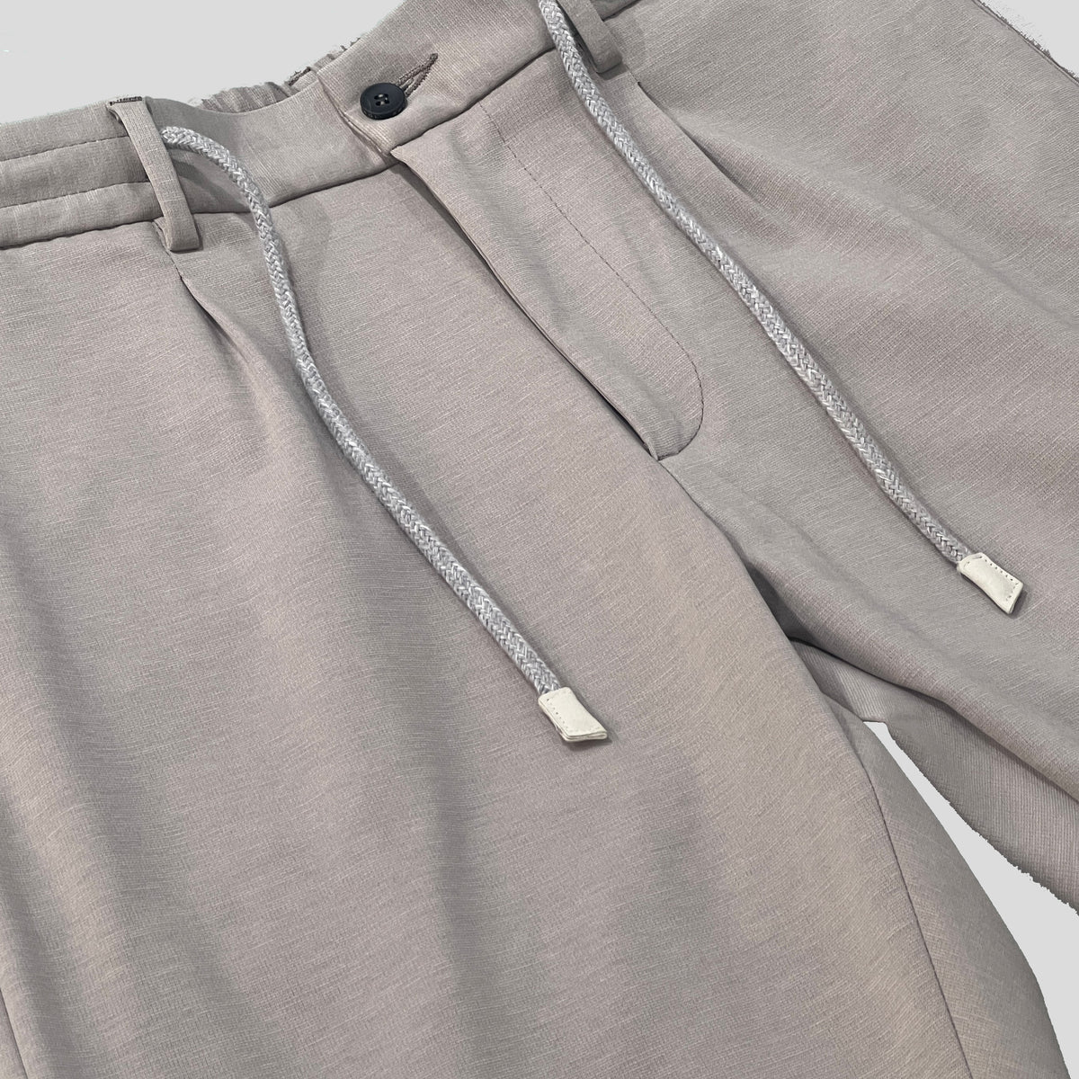 Design & Fit: A slim, tapered silhouette that balances sportswear with tailored elegance. features a coulisse (drawstring) waist, side slanted pockets, and rear welt pockets.