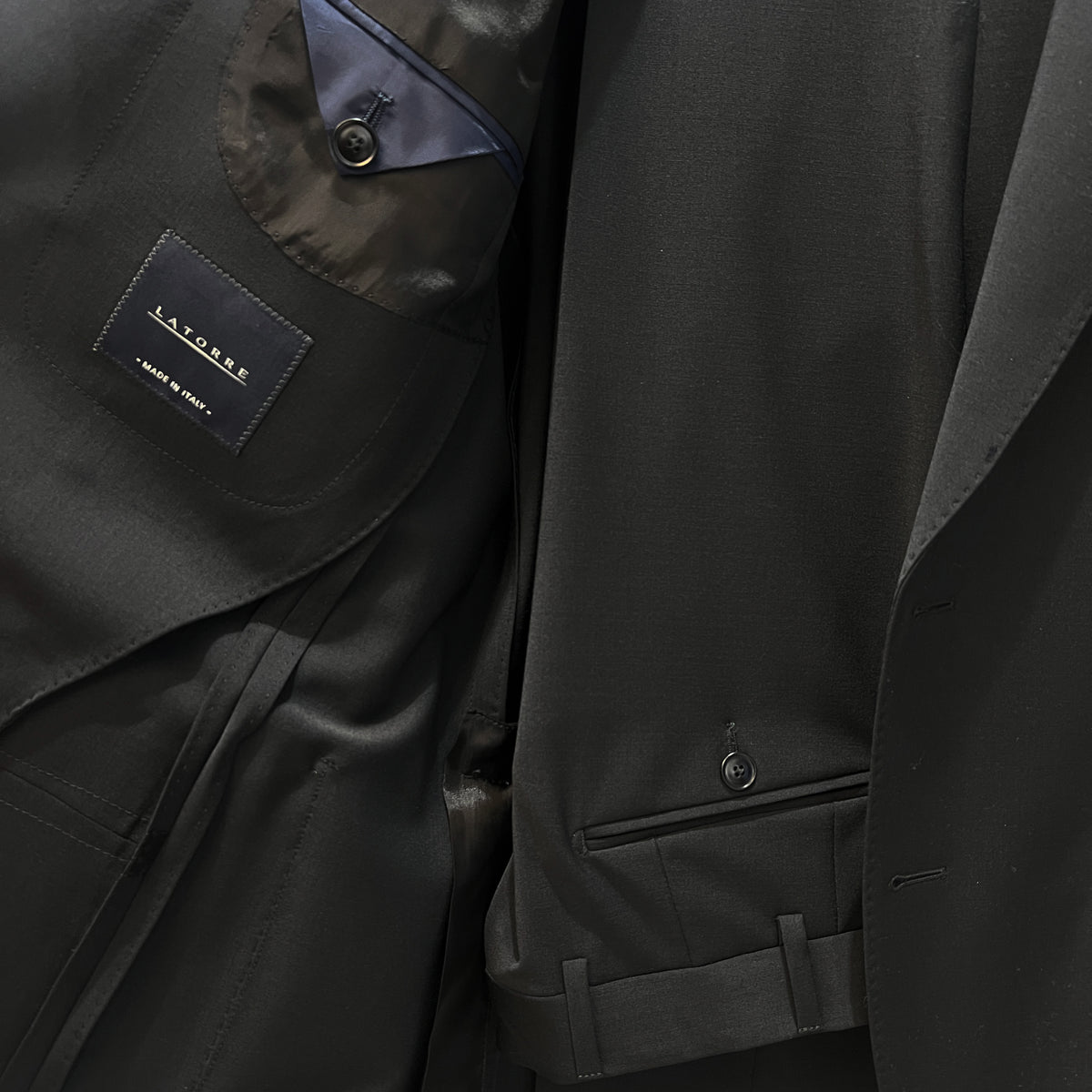 PRODUCT DESCRIPTIONThis Latorre suit is made from high-quality Virgin Wool Blend, with a simple structure, patch pockets, picked stitching & a matt shine finish.