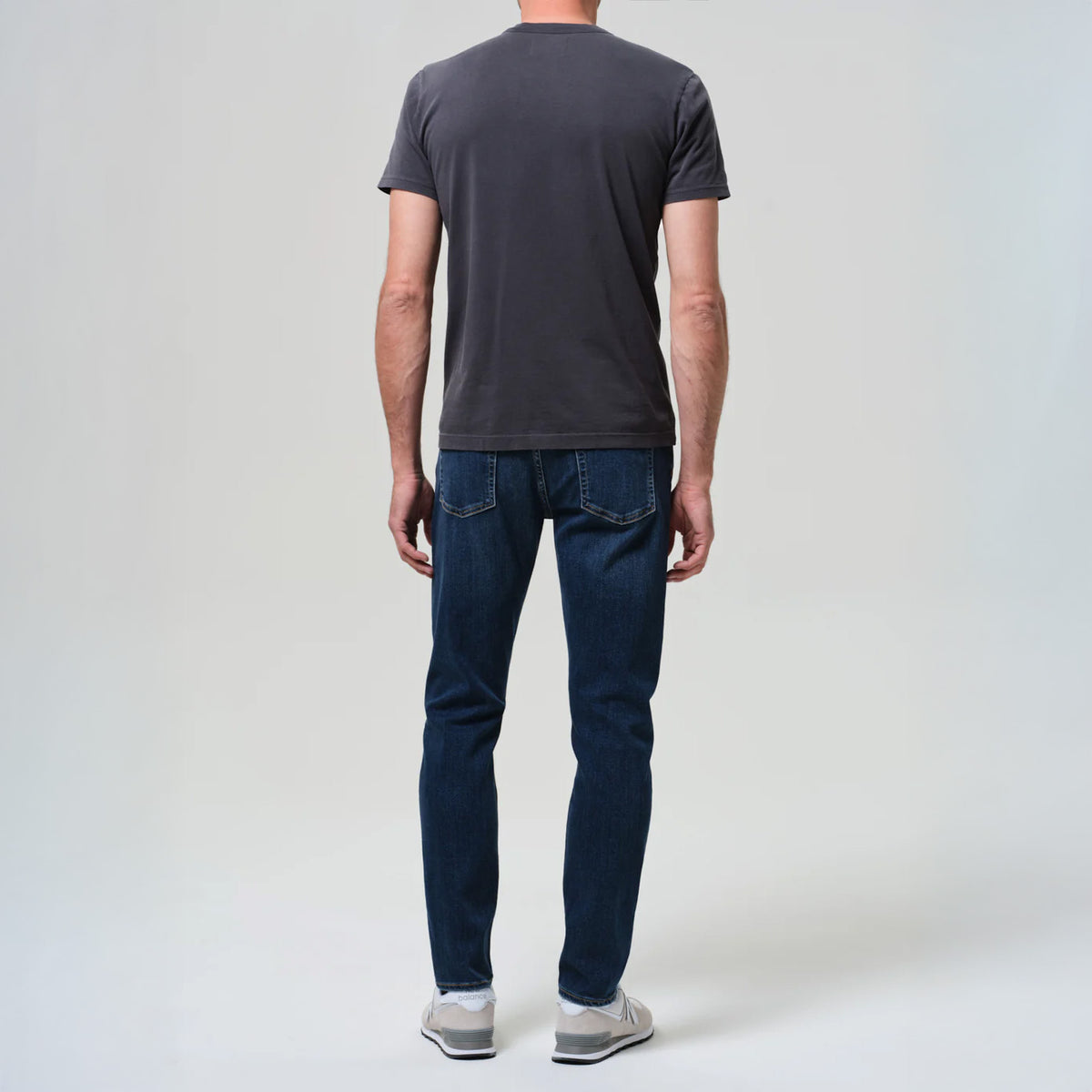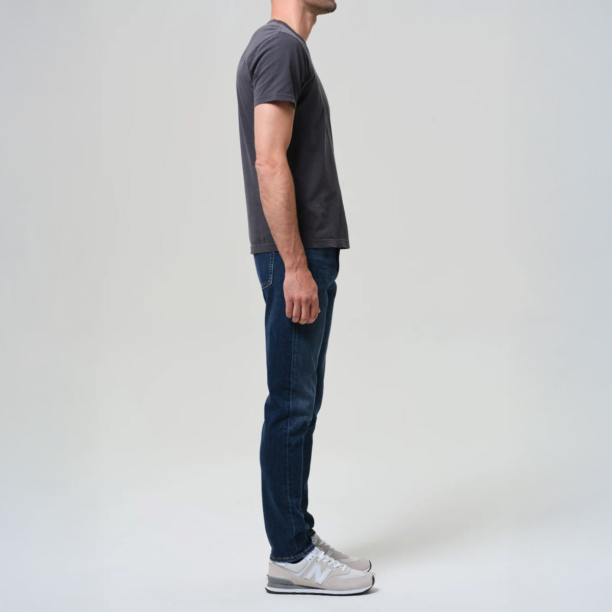 The ‘London’ is a modern slim taper, cut from lightweight regenerative Perform denim with comfort stretch and a soft, flexible feel. Designed to sit clean through the thigh and taper below the knee, it offers a streamlined yet easy silhouette. Duke is a dark indigo wash with subtle fading and whiskering for a polished, everyday finish.